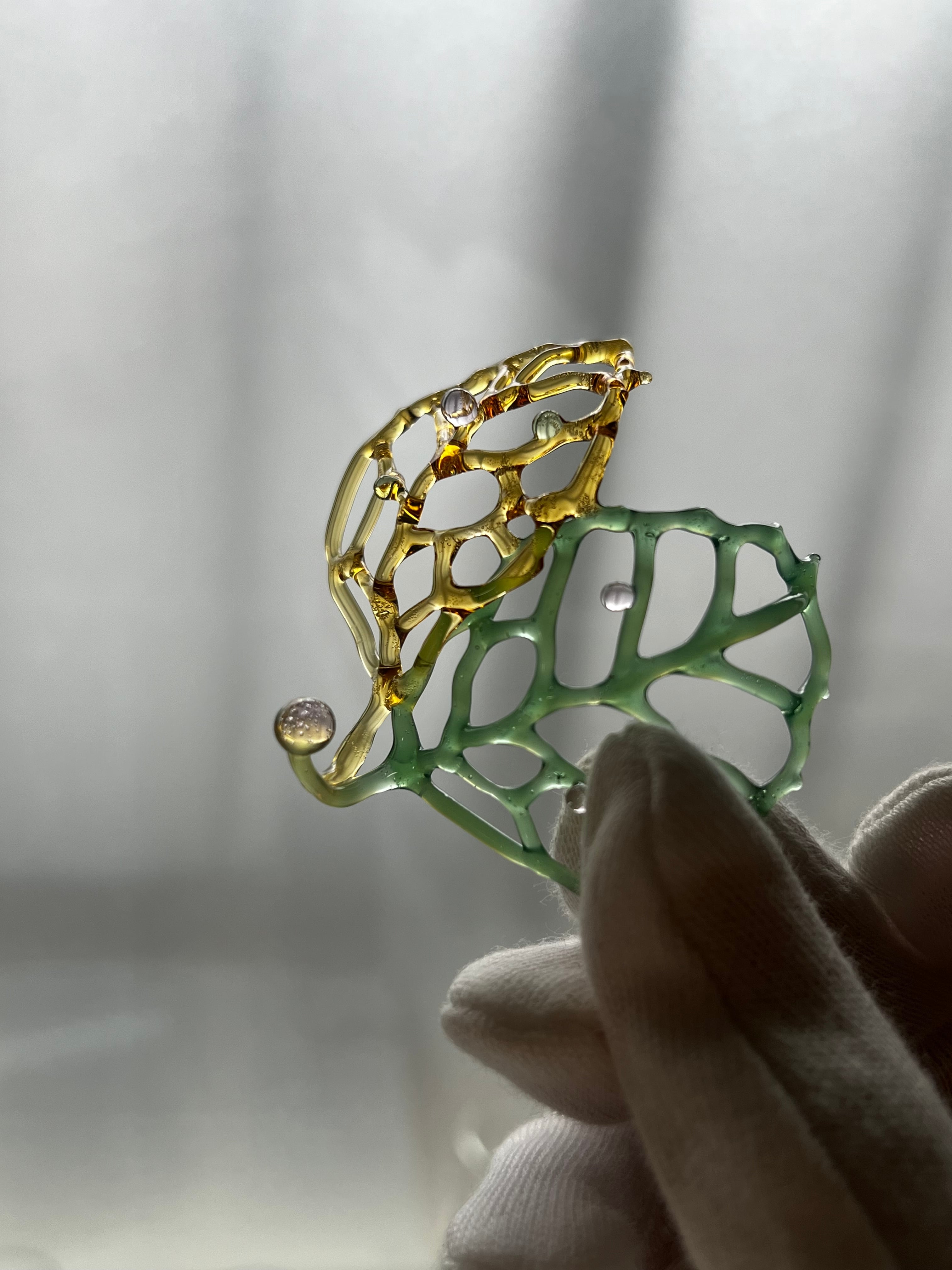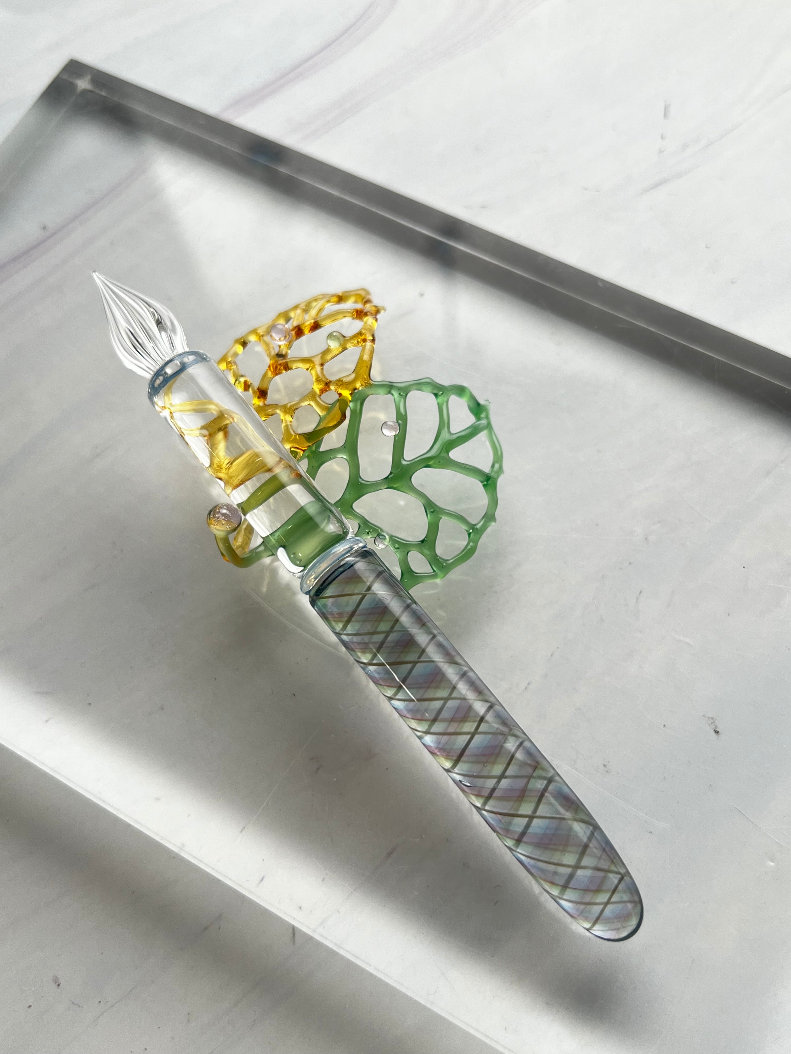 耐熱ガラスstringer work で制作された葉っぱのペンレスト