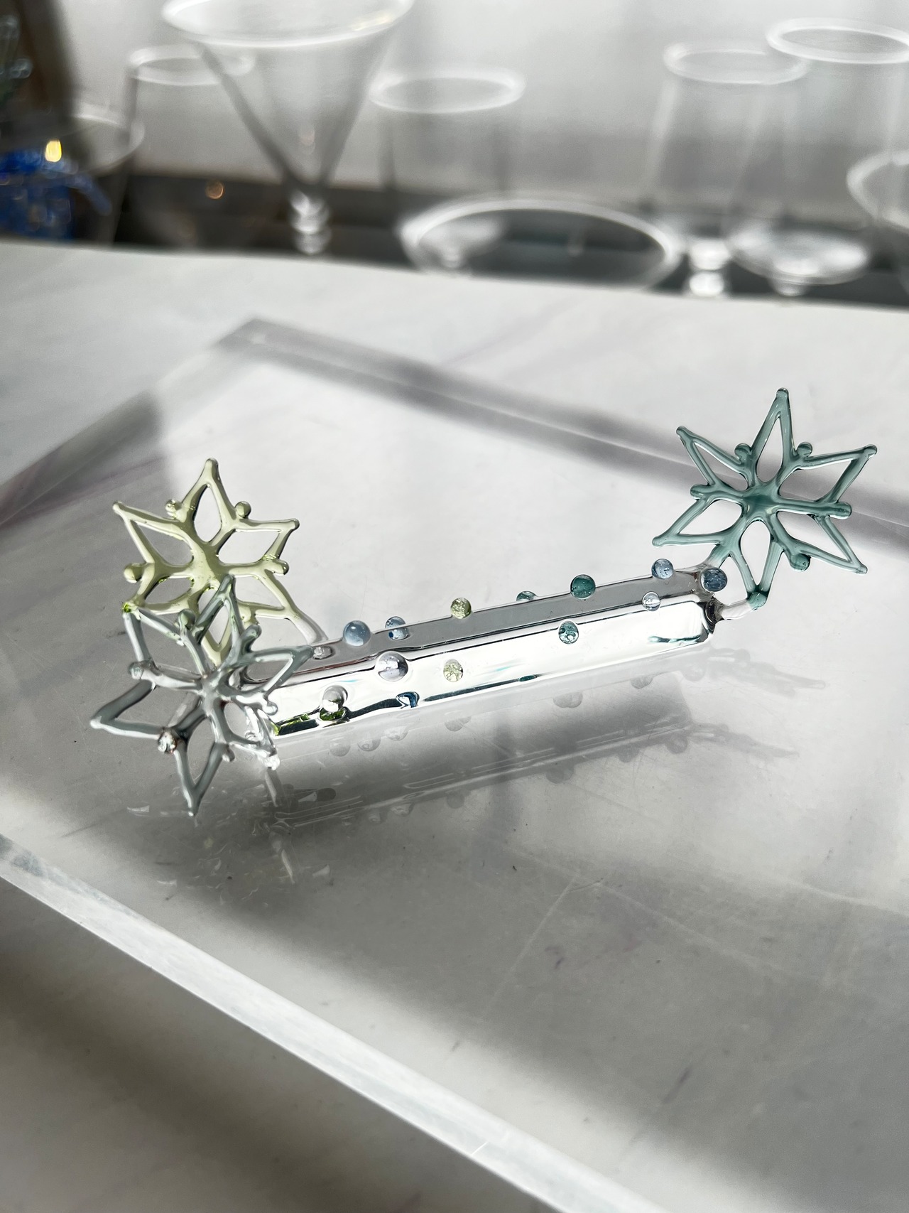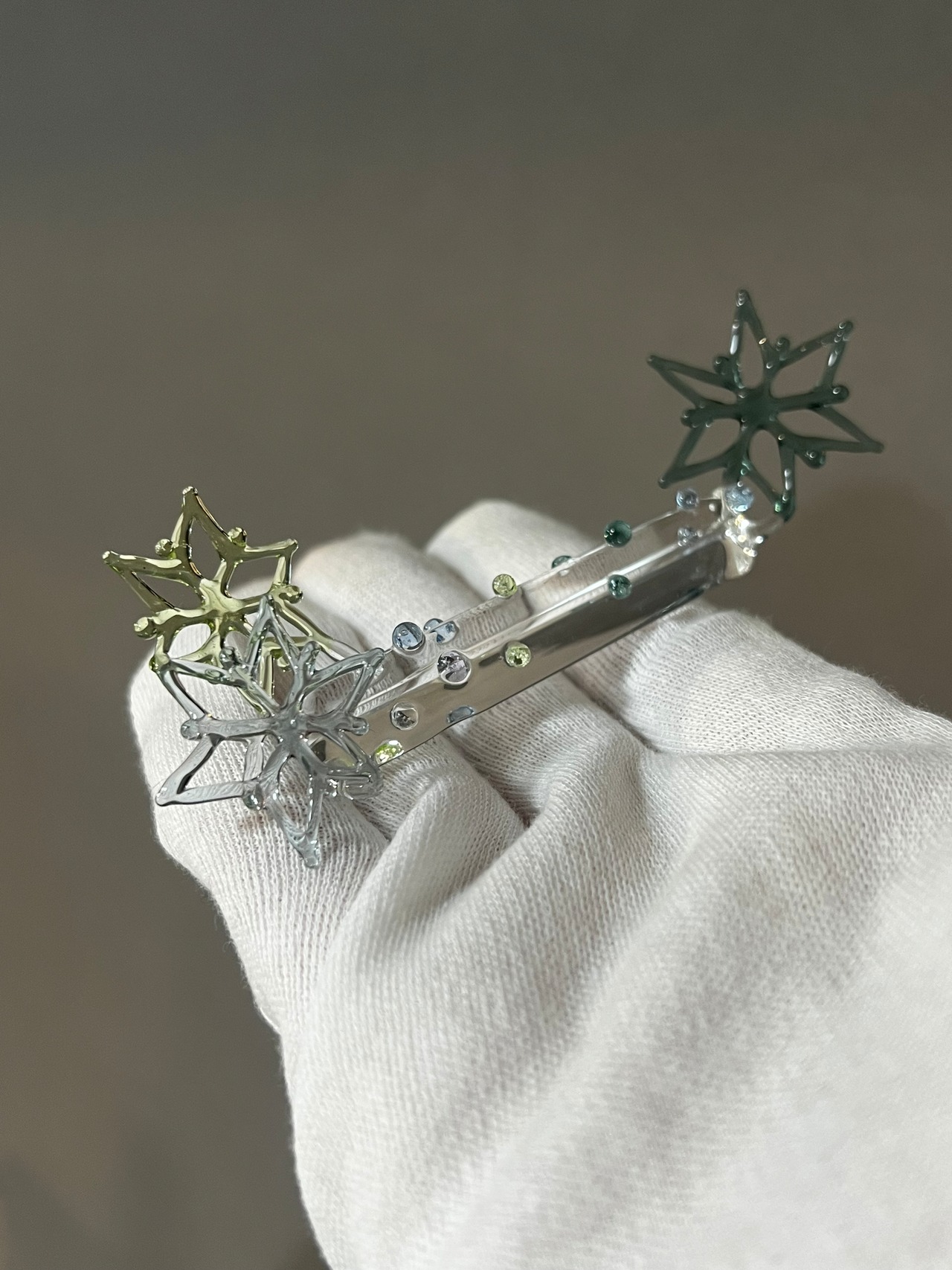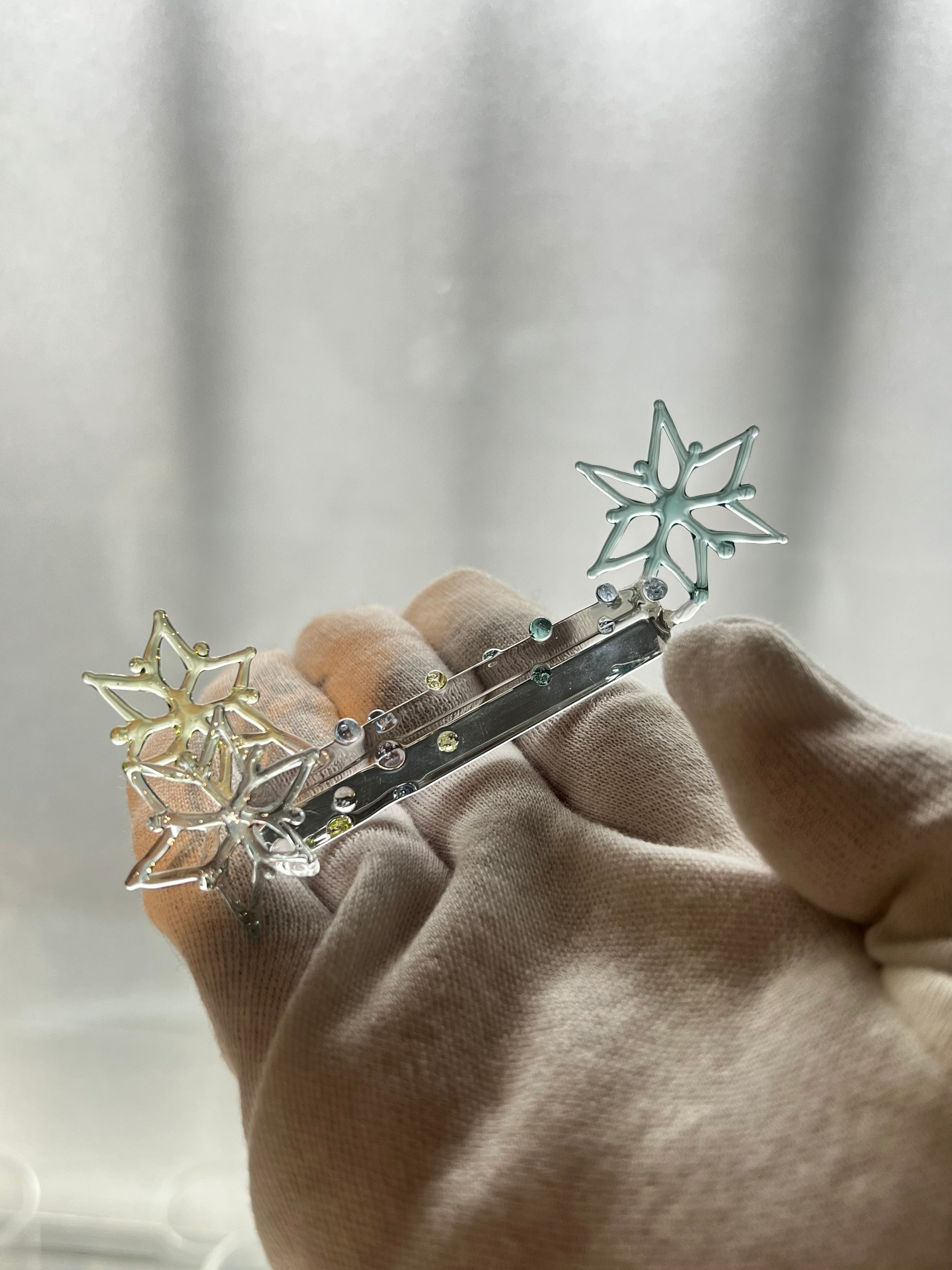 耐熱ガラスstringer work で制作された雪の結晶のペンレスト